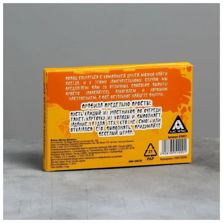 Купить игра для компании "фанты буханты" 20 карт от 100 руб. с доставкой до пункта выдачи в Таганроге. Интернет магазин ДекаМаркет. Оплата при получении.